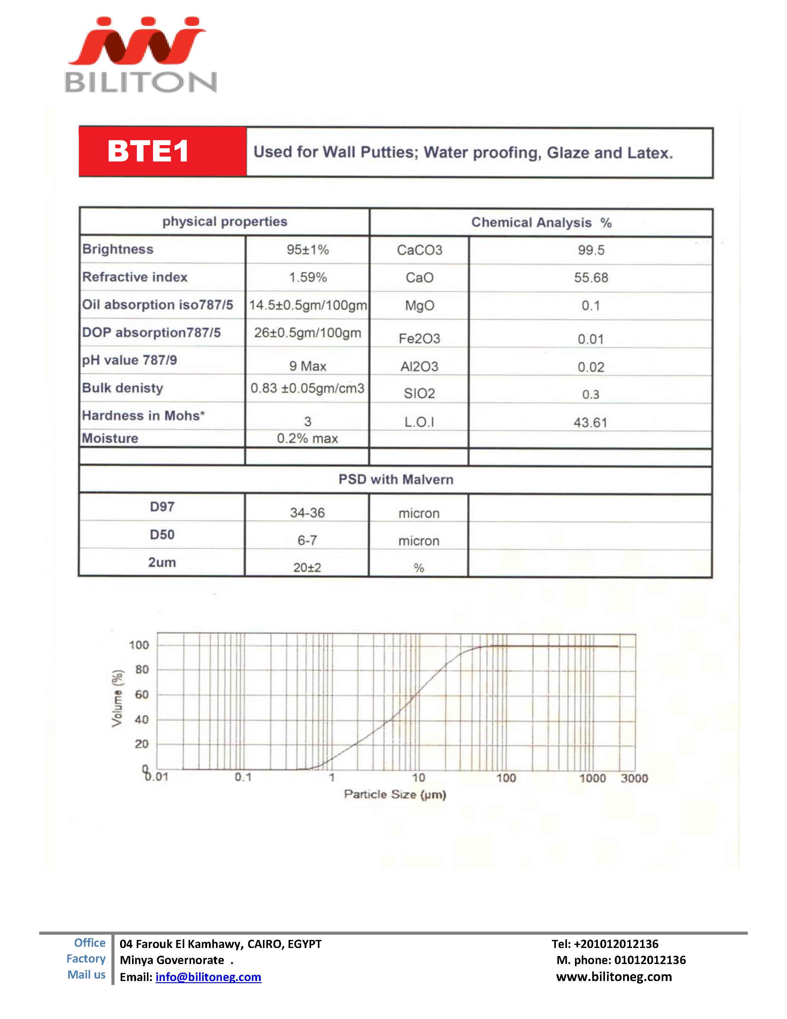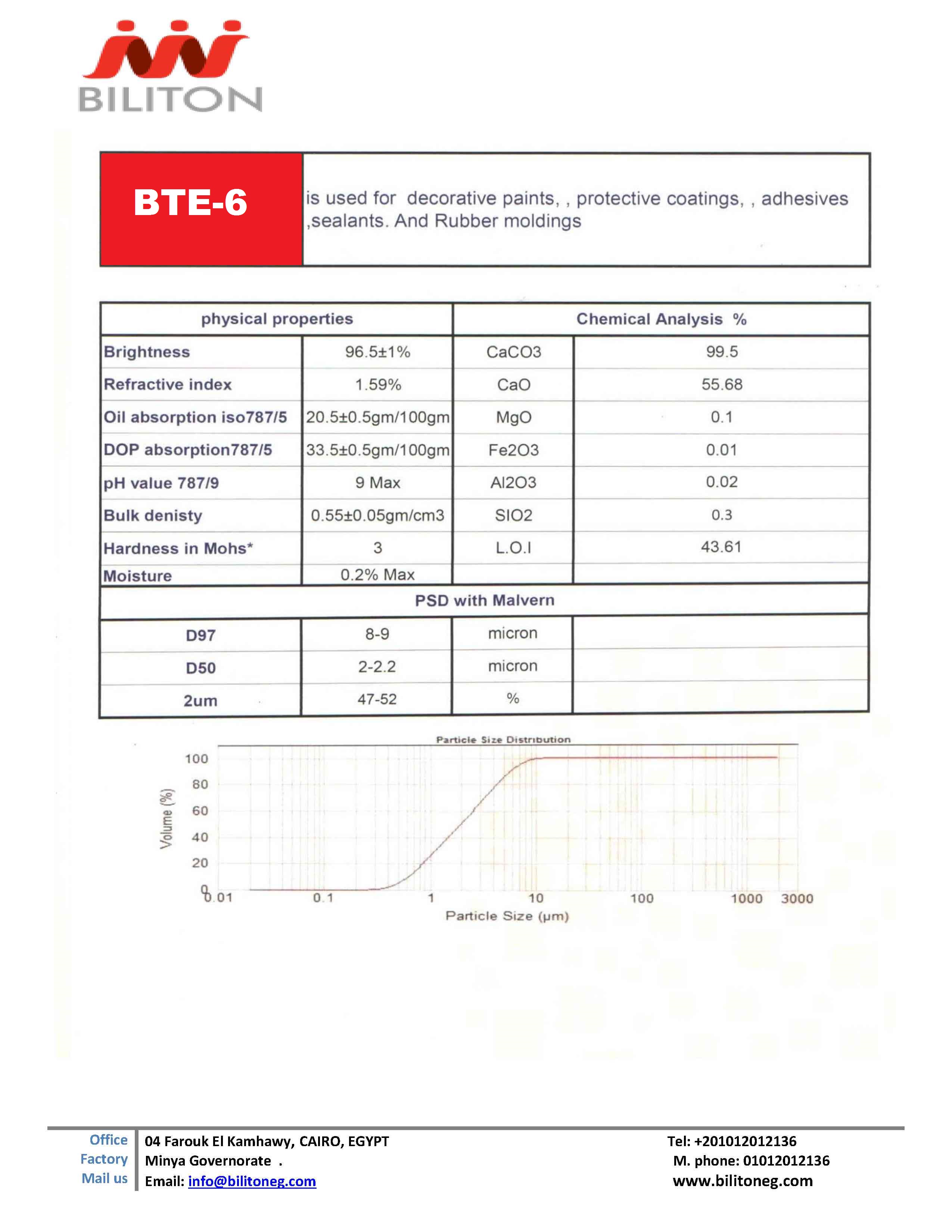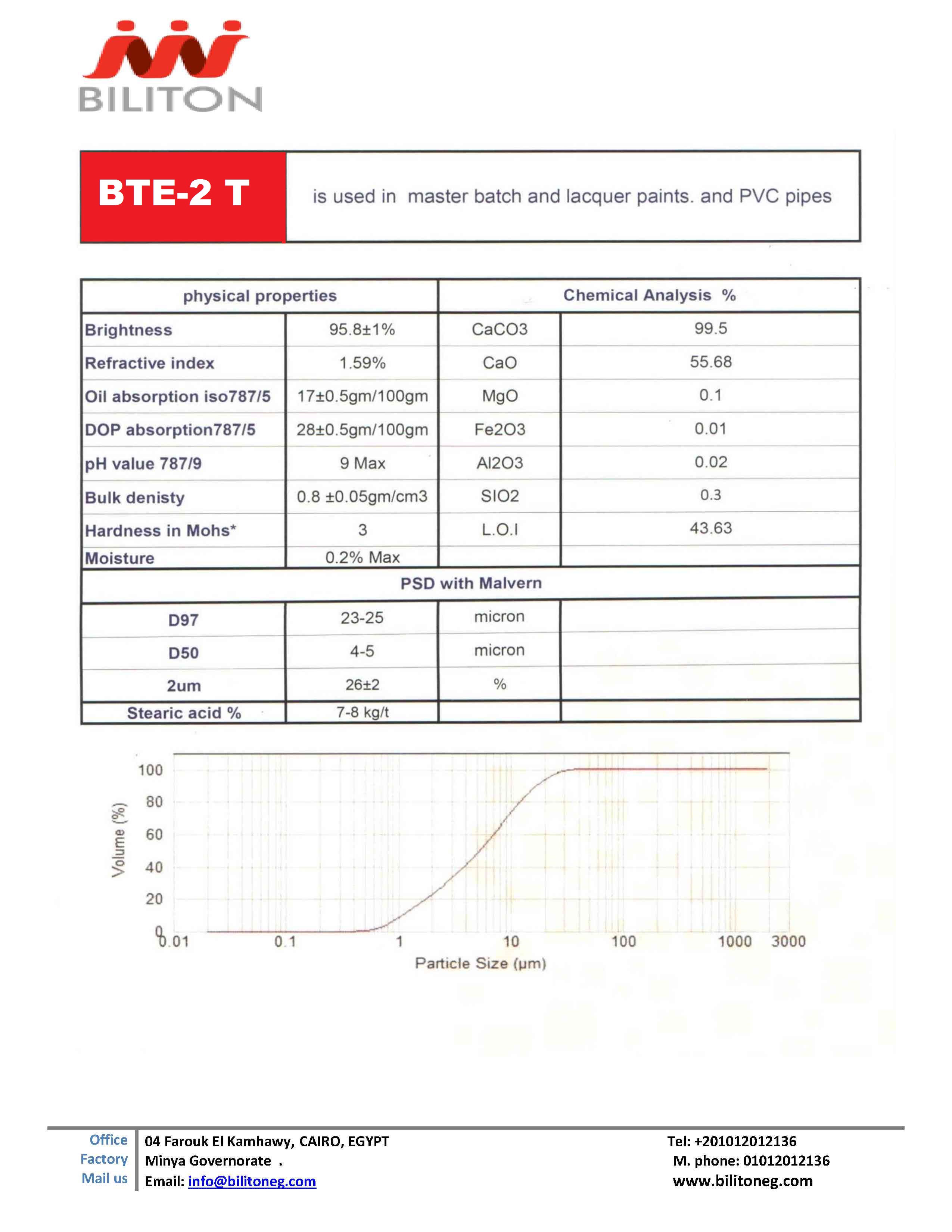 Calcium carbonate, or CaCO3, comprises more than 4% of the earth’s crust and is found throughout the world. Its most common natural forms are chalk, limestone, and marble, produced by the sedimentation of the shells of small fossilized snails, shellfish, and coral over millions of years. Although all three forms are identical in chemical terms, they differ in many other respects, including purity, whiteness, thickness and homogeneity. Calcium carbonate is one of the most useful and versatile materials known to human.